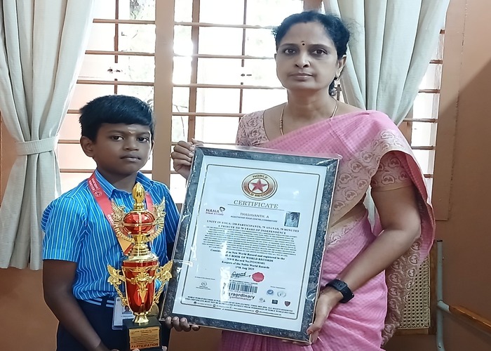 “NANA Yoga Centre” conducted World Record Yoga attempt on September 1st 2025. A.Thashvanth of standard VI-B participated and received the certificate and Trophy.