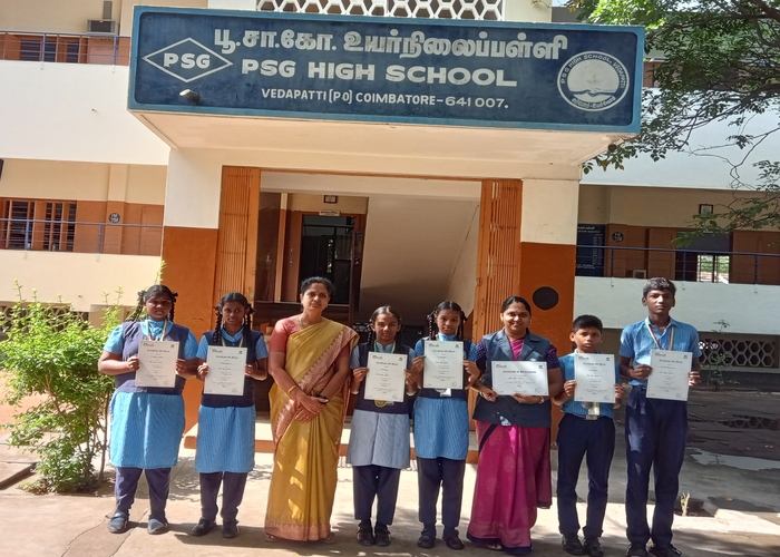 T. Jose Sameera of Standard IX won the first place in the PSG Tech Talent test for the GRD Rolling trophy in Coimbatore District (among Tamil medium students) on  02.11.2023.