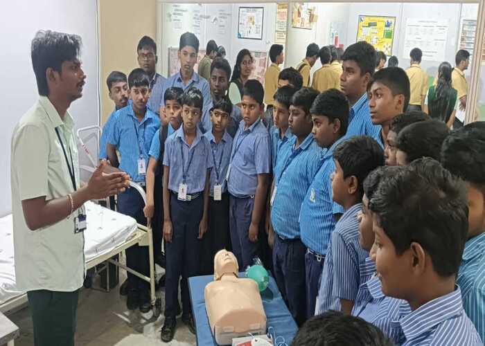 Sixteen students and  three staff  members  of  PSG College  of  Nursing, Peelamedu conducted  the  Career  Guidance  Programme on “Nursing  as  a  profession” and  “First  Aid” awareness programme  on  30th January 2024.